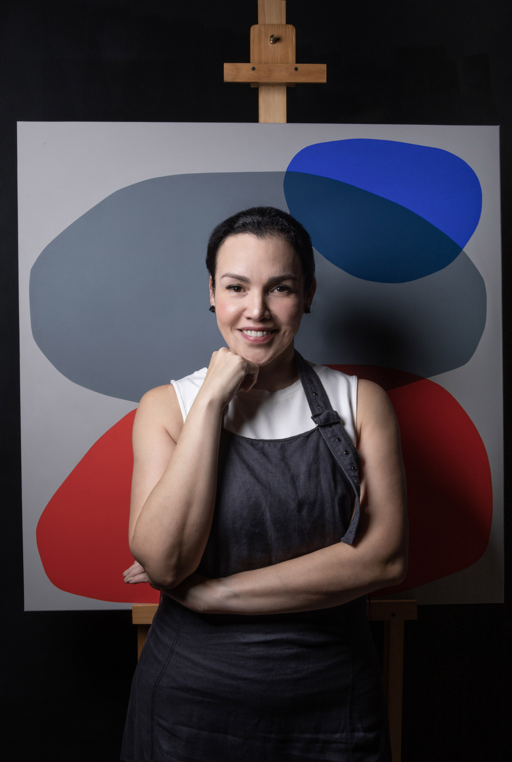 Artista visual contemporánea que explora colores y formas orgánicas en xilograbados y pinturas.